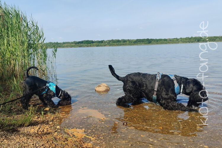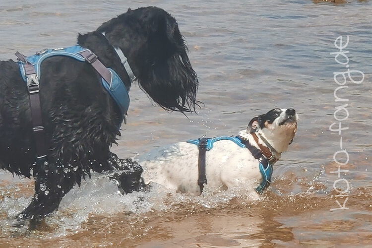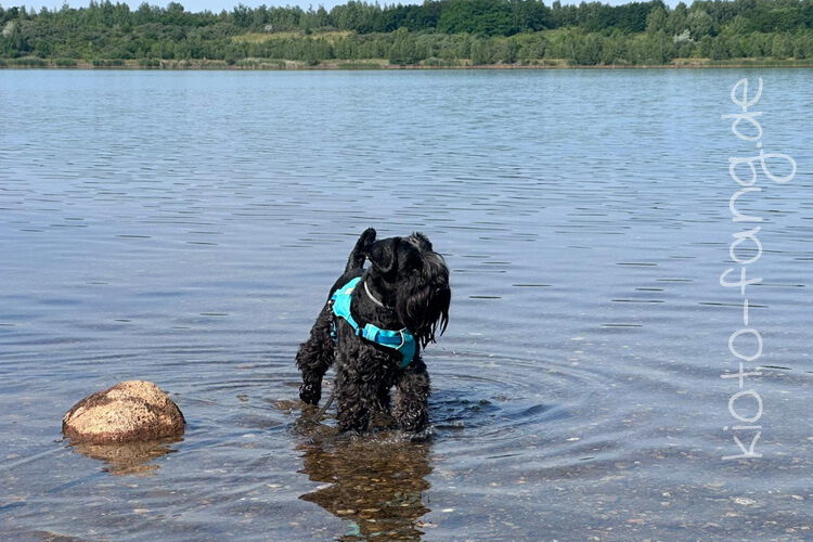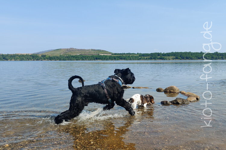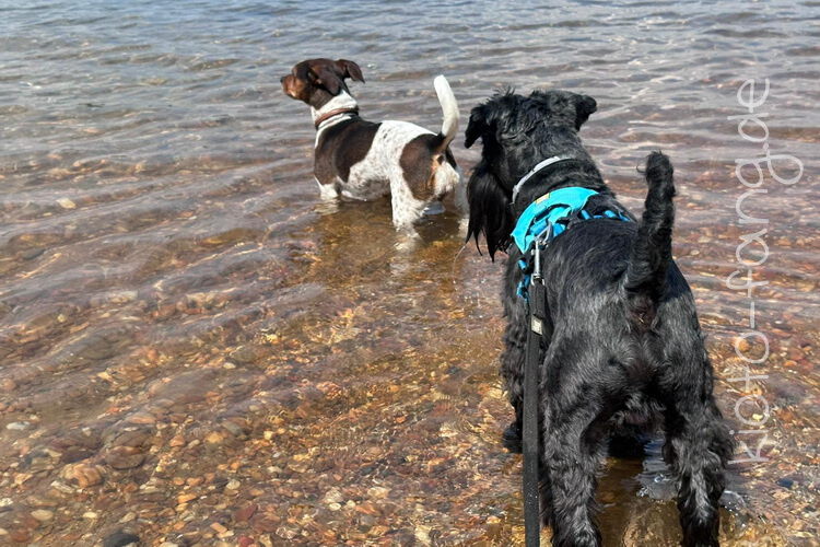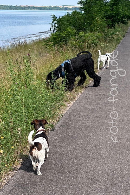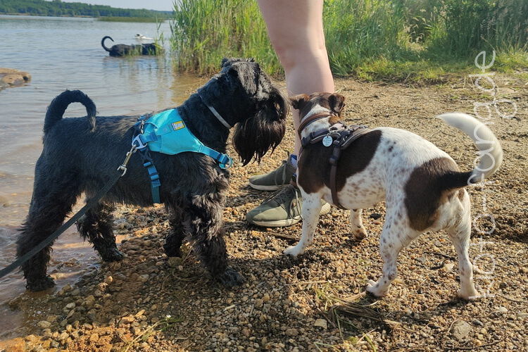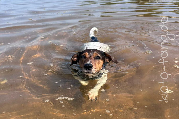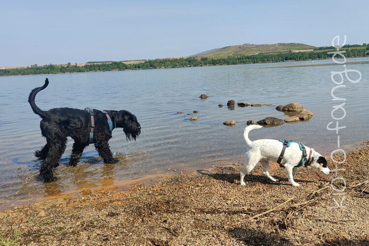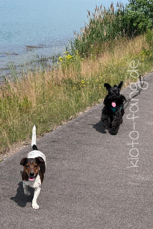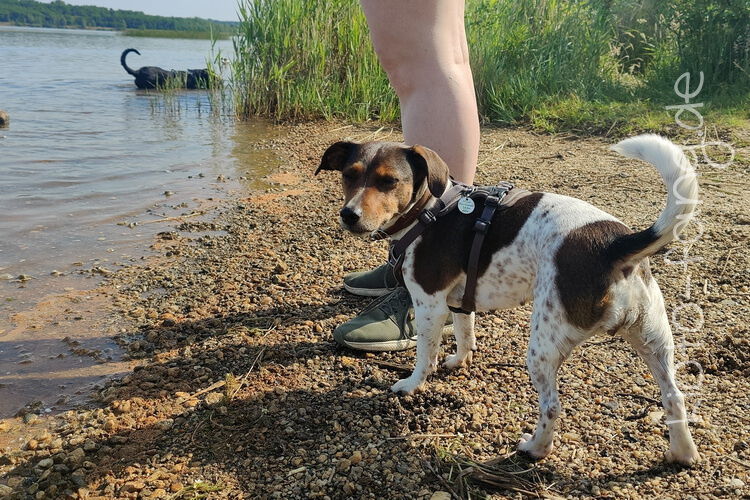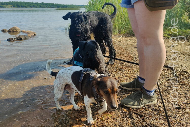 Mit den Jack Russel Damen sind wir am See und Kio geht für Malu sogar kurz ins Wasser..