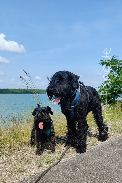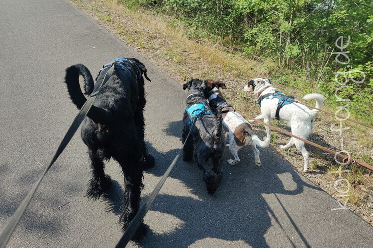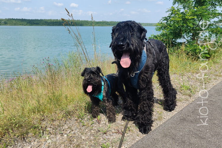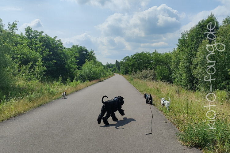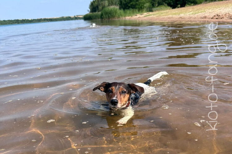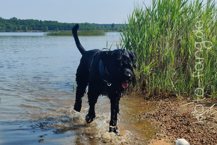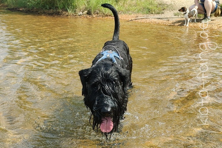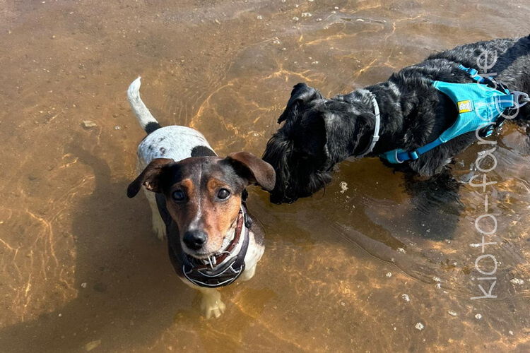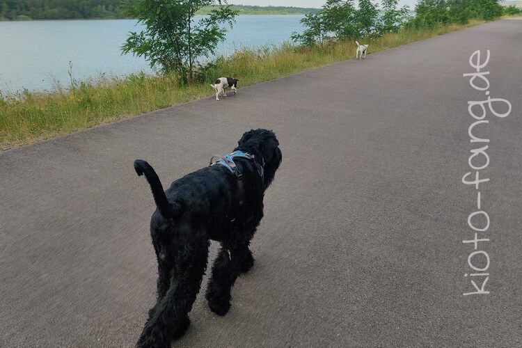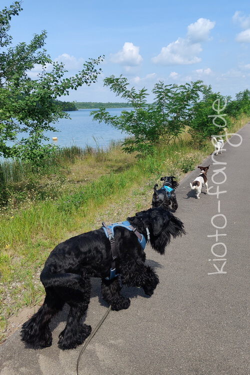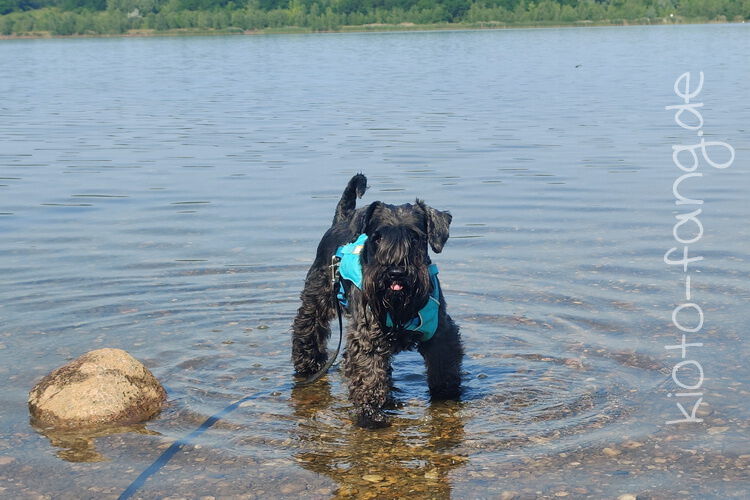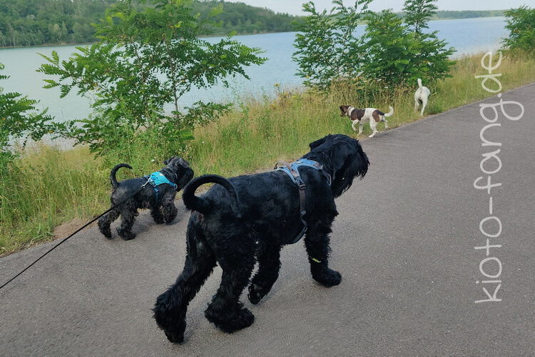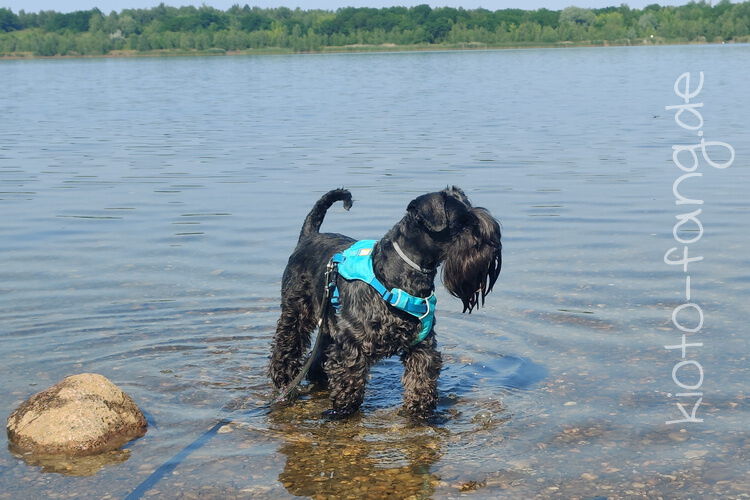 Mit den Jack Russel Damen sind wir am See und Kio geht für Malu sogar kurz ins Wasser..