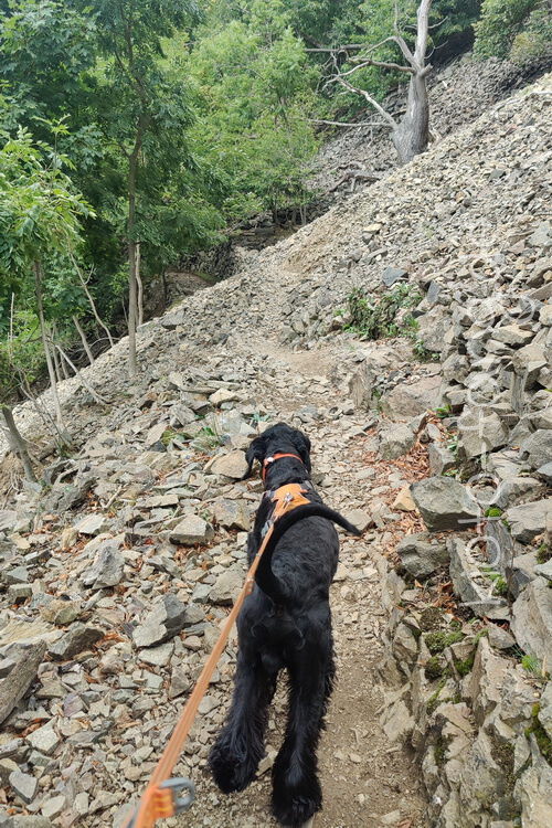 Der Aufstieg zur Roßtrappe war sehr steinig und Regenfälle und Rutschungen haben dem Weg stark zugesetzt. Auf der Roßtrappe angekommen, hatten wir eine tolle Aussicht. Auf der anderen Seite ging es dann wieder hinunter ins Bodetal. Und der Abstieg war noch viel steiniger als der Aufstieg. Es ging nur hintereinander und mit festem Schritt, damit man nicht wegrutscht.