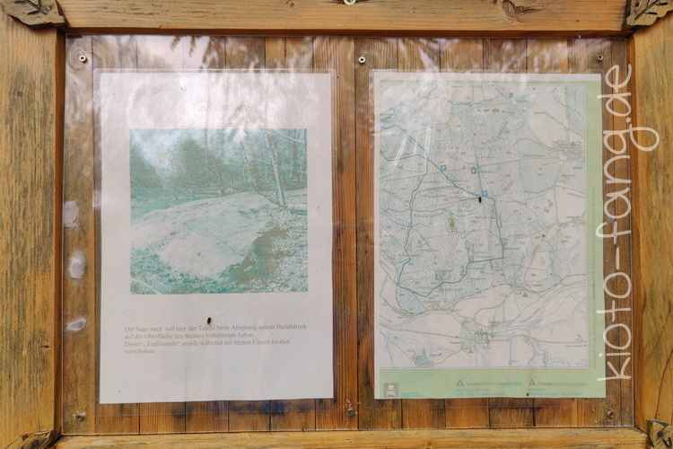 "Der Sage nach soll hier der Teufel beim Absprung seinen Hufabdruck auf der Oberfläche des Steines hinterlassen haben.