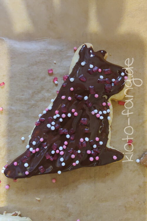 Warum nicht schon im September ein paar Plätzchen backen.... Kio schaut über die Tischkante und Fang liegt in Kio's Körbchen. Er hält sich für kleiner als er ist.