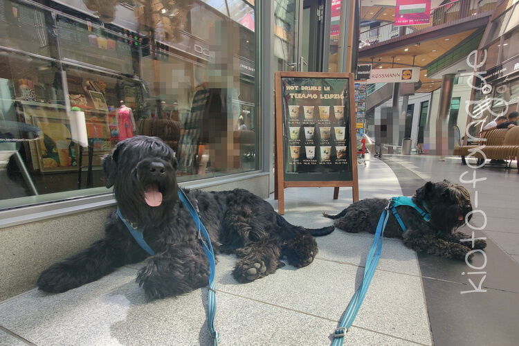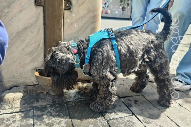 Die Großstadt ruft und das zur EM im Fußball... Das war so gar nicht geplant, jede Menge Fußballfans zogen lärmend durch die Stadt, da blieb nur die Flucht in den nächsten Klamottenladen mit anschließendem Bubble Tea. Die beiden waren sehr tapfer und konnten selbst am eigens gebauten Hundenapf am Trinkbrunnen auftanken.