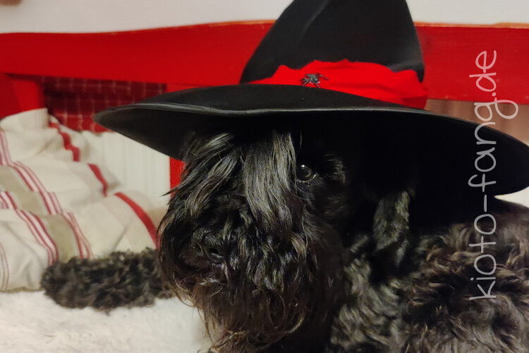Halloween, Kio's Kostüm ist sicher, er geht als schwarzer Zauberer...