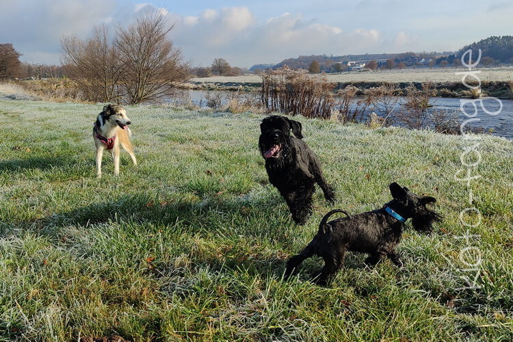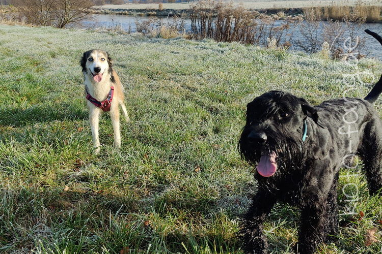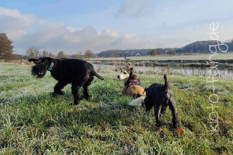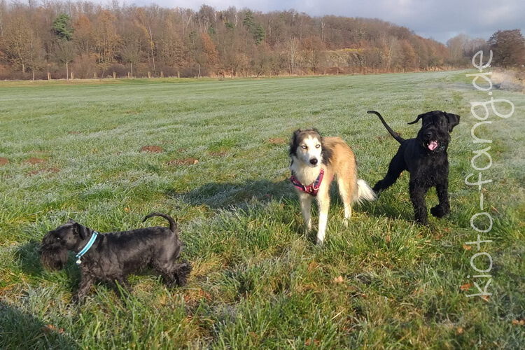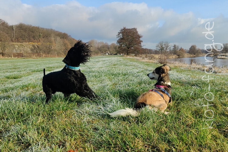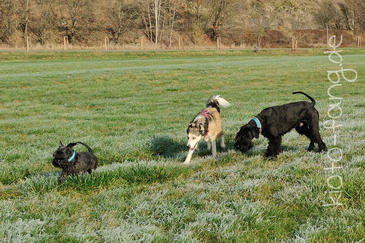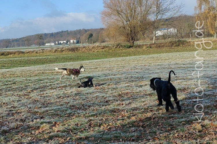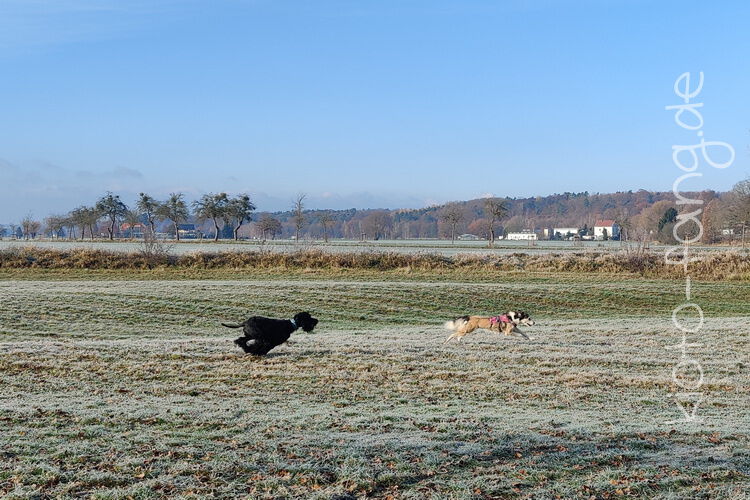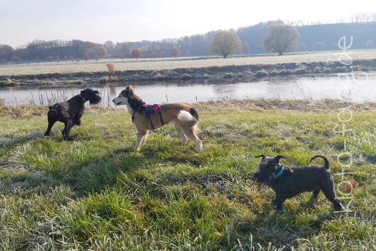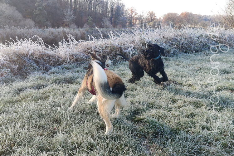 Nach der ersten richtig frostigen Nacht machen wir einen Muldenspaziergang mit Katara ...