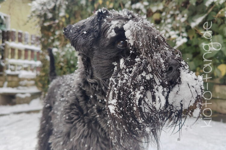 Es fällt noch mehr Schnee und für Kio wird es schwierig nicht komplett im Schnee zu versinken...
