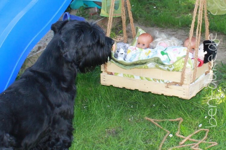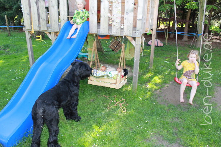 Duke ist erstaunt über die Puppenkinder in der Puppenschaukel...