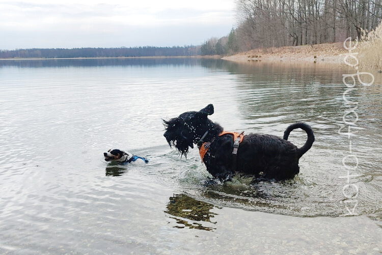 Ausflug mit den Mädels an den See. Kio ist nicht so der Wasserhund, Amy und Fang dafür umso mehr.