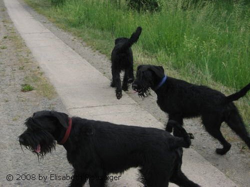 Ein Besuch bei Karin, Ronja und Bellina! Friseurtag!!! Duke hat heut seine neue Ausstellungs- und Sommer-Frisur bekommen. Er sieht nun wieder super schick aus. Nachdem er sich beim Spaziergang mit den Mädels erst einmal in den größten Matsch gelegt hat, wahrscheinlich um besonders unwiederstehlich zu riechen. Da war vor dem Schneiden ersteinmal eine Dusche fällig.