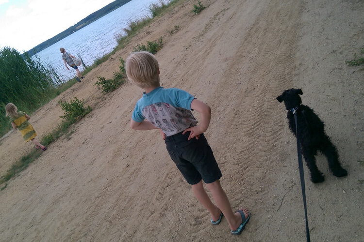 Wir alle lieben das Wasser und hoffen, dass es Kio ebenso viel Freude macht, im kühlen Nass zu sein. Die ersten Schwimmversuche hat er schon gemeistert und so ein wenig schien es ihm auch Spass zu machen. So ein wilder Wasserhund mit Schwimmhäuten zwischen den Zehen, wie Duke es war, wird er aber wahrscheinlich doch nicht werden. ;-)