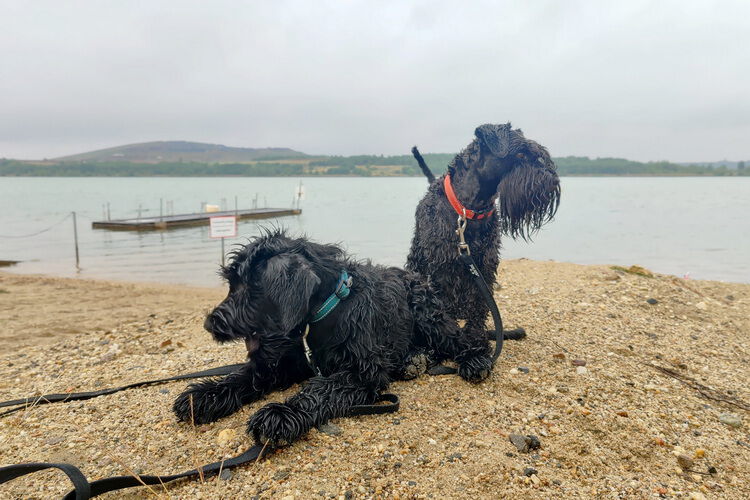 Wir fahren das erste Mal an den See.. leider bei Regen. Dennoch gehen beide ins Wasser und Fang macht erste Schwimmübungen.