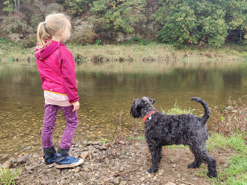 Mit meinen menschlichen Geschwistern gehe ich sehr gern an der Mulde spazieren.