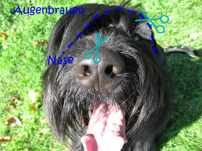 ... und die Stirn werden nur getrimmt mit dem kleinen Trimmstriegel und nicht geschoren.