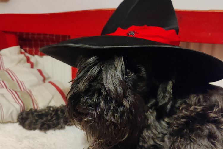 Halloween, Kio's Kostüm ist sicher, er geht als schwarzer Zauberer...