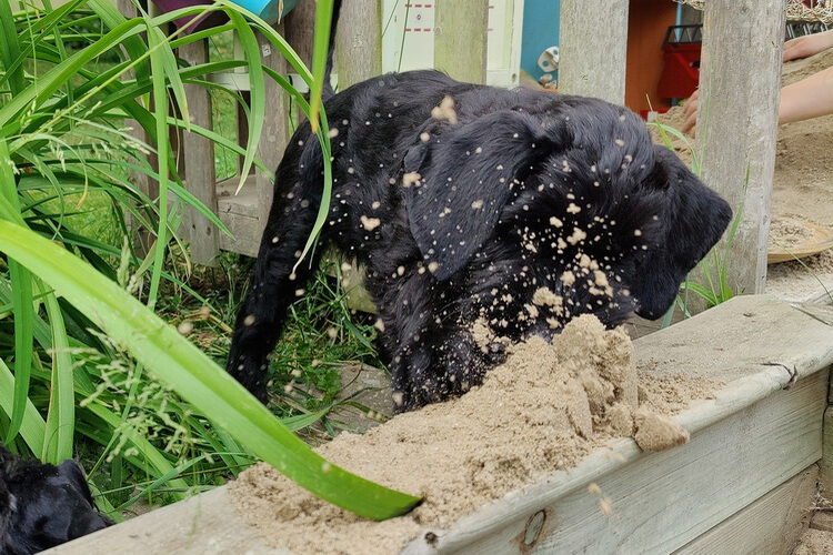 Es ist ganz schöne heiss und die Beiden freuen sich über etwas Abkühlung in der Bademuschel.