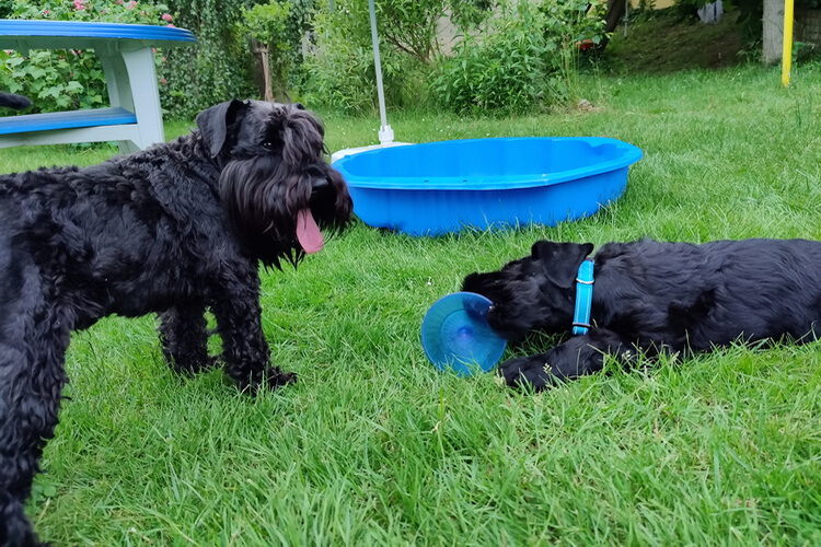 Der erste Tag im neuen Heim... Fang erkundet den Garten und Kio lernt seinen neuen Freund kennen. Anfängliche Zurückhaltung wird jetzt durch Spielfreude ersetzt.