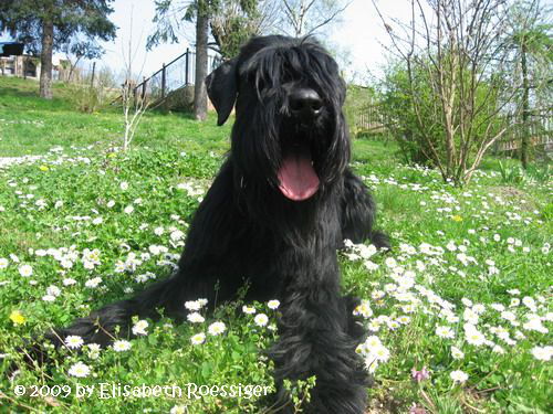Duke in seinem begehbaren Wassernapf. Da fühlt er sich wie ein Krokodil.
