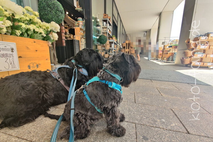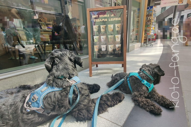 Die Großstadt ruft und das zur EM im Fußball... Das war so gar nicht geplant, jede Menge Fußballfans zogen lärmend durch die Stadt, da blieb nur die Flucht in den nächsten Klamottenladen mit anschließendem Bubble Tea. Die beiden waren sehr tapfer und konnten selbst am eigens gebauten Hundenapf am Trinkbrunnen auftanken.