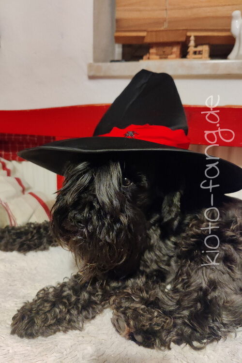 Halloween, Kio's Kostüm ist sicher, er geht als schwarzer Zauberer...