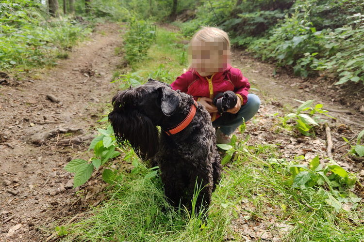 Wir drehen eine kleine Waldrunde. Kio hat viel zu schnuppern... und Fang war danach seeehr müde...