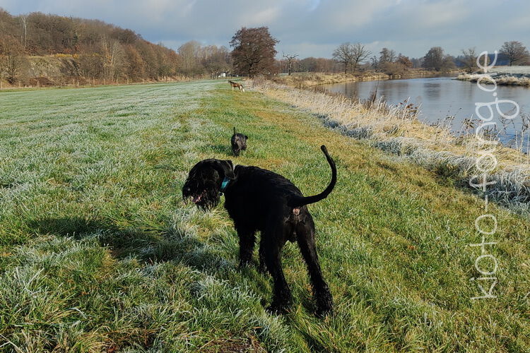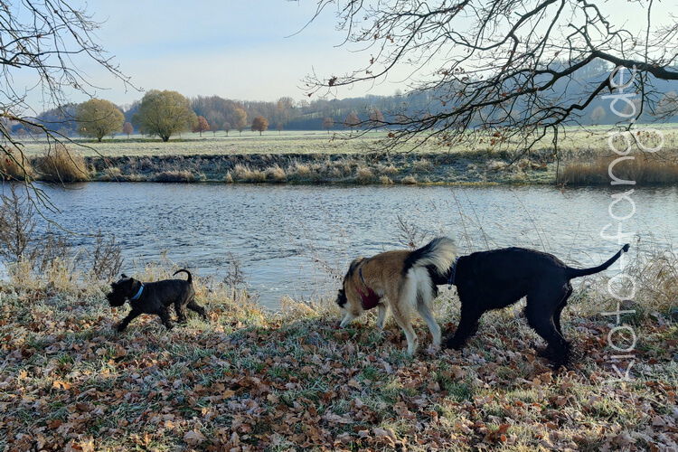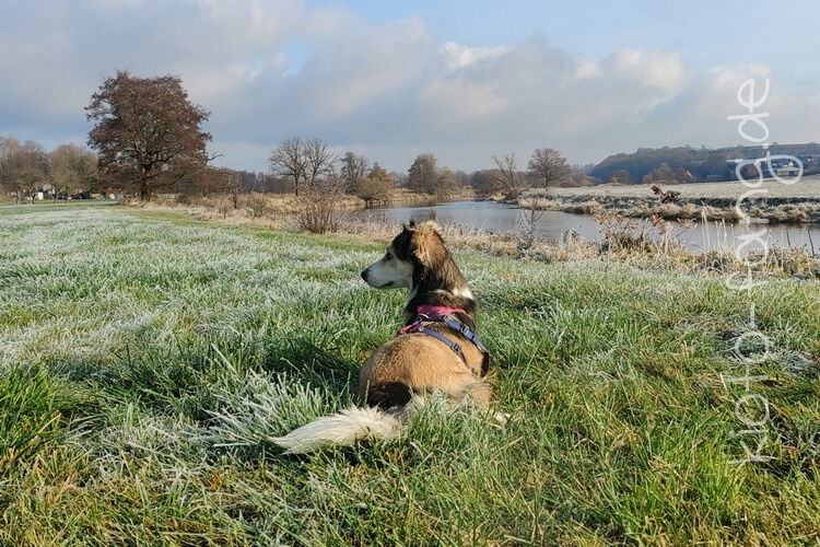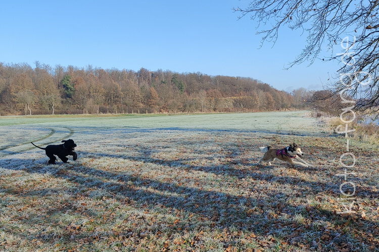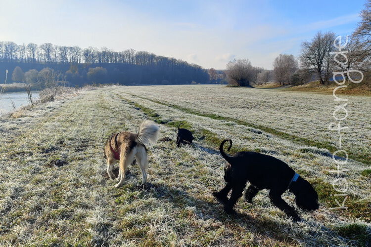 Nach der ersten richtig frostigen Nacht machen wir einen Muldenspaziergang mit Katara ...