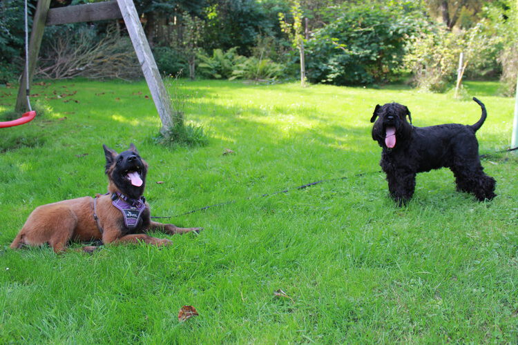 Kio hatte Besuch von einer jungen Tervueren Dame namens Quinn (Quinn of Baxley). Quinn ist gerade 3 Monate alt und eine kleine selbstbewusste Hündin, die großen Gefallen an Kio und unseren Kaninchen gefunden hat.